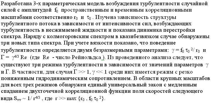 На основании развитой модели доказано, что при некоторых условиях в турбулентной среде перенос примесей может происходить значительно быстрее, чем это было показано ранее в классических работах. ( д.ф.-м.н. Моисеев С.С., Гордиенко С.Н. 333-41-00)