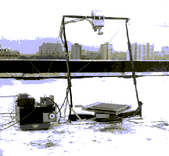 Измерения проводились на крыше здания ИКИ. Экспериментальная установка состояла из радиометра с антенной, закрепленного на раме, ванны с водой и вспомогательных устройств (см рис.1).