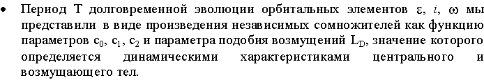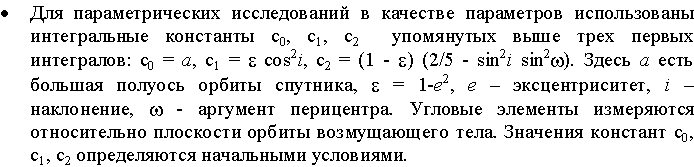 1. Разработан геометрический метод сравнительного параметрического анализа решений спутникового варианта ограниченной круговой двукратно-осредненной задачи трех тел. Это позволило наглядно представить топологическую структуру этих решений и параметрическую зависимость характера долговременной эволюции искусственных спутников планет под влиянием гравитационных возмущений внешних тел.