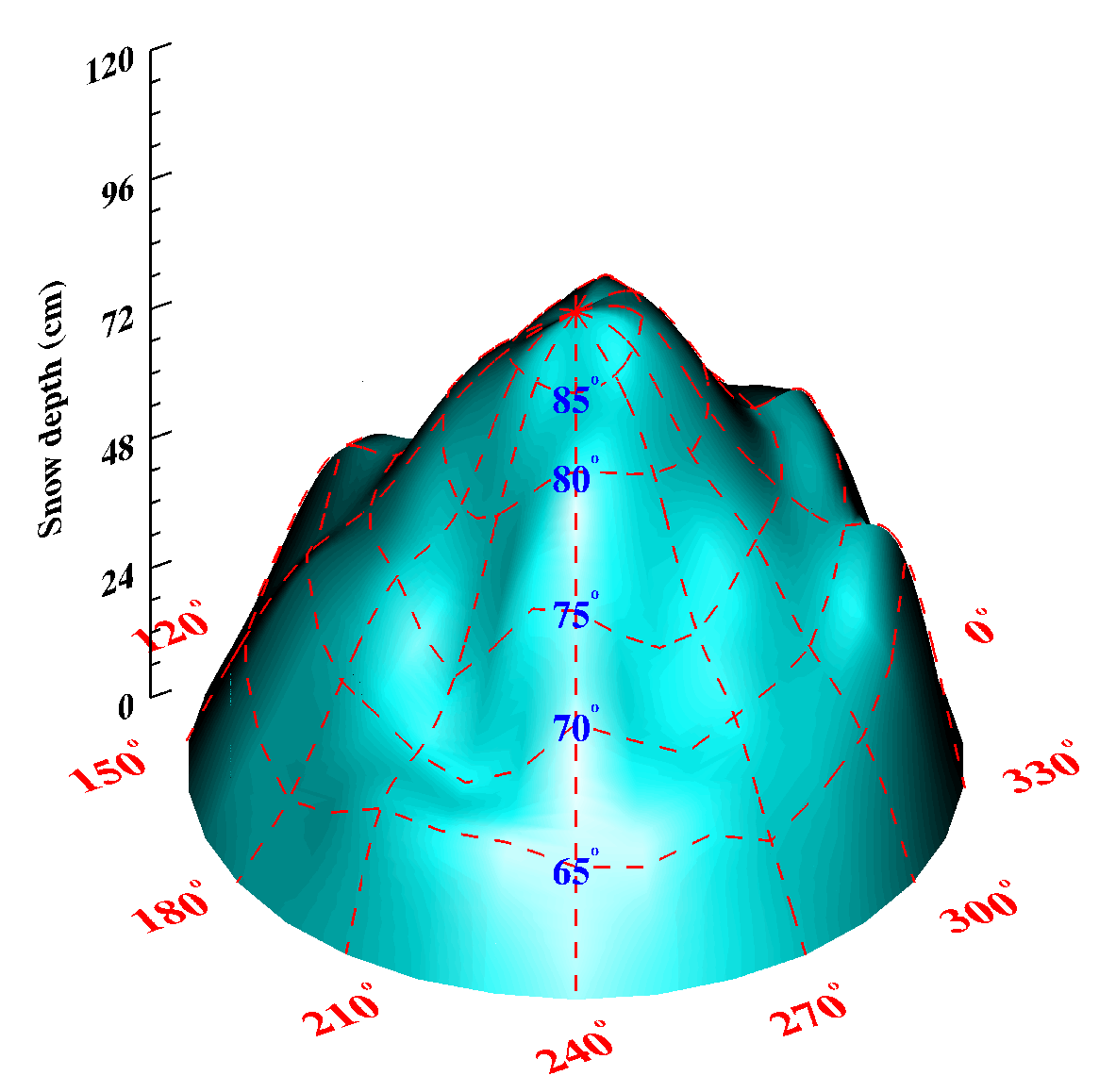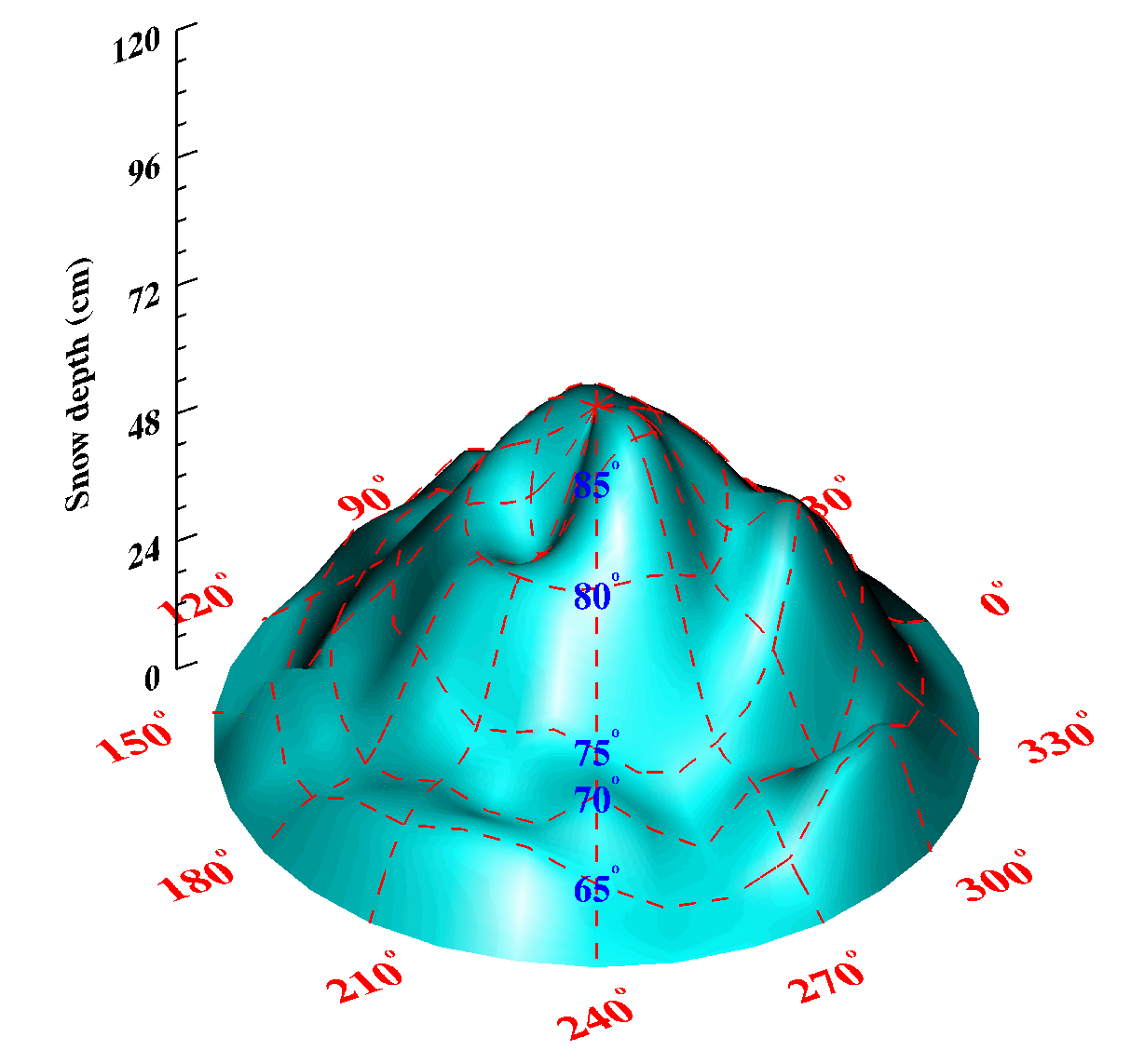 Для определения толщины сезонного покрова сезонные шапки Марса были разбиты на совокупность отдельных областей полностью покрывающих всю их поверхность. Для каждой области была построена численная модель грунта. Вычисление эффективной толщины сезонного покрова основывалось на добавлении в эту модель слоя имитирующего осажденную углекислоту. Значение толщины сезонного покрова определялось в результате поиска наилучшего согласия между модельными предсказаниями со слоем замерзшей углекислоты определенной толщины и реальными измерениями орбитального потока нейтронов полученных в течение периода времени, когда происходила активная сублимация или конденсация сезонных отложений. Совокупность оценок толщины сезонного слоя полученных для каждой области в разные периоды времени позволило построить четырехмерную модель сезонного покрова показывающую как эффективная толщина замерзшей углекислоты меняется от места к месту и с течением времени.