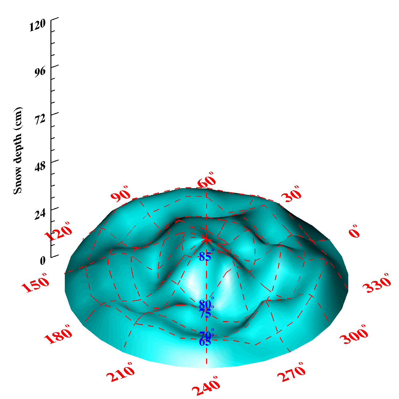 2 в геометрические размеры измеряемые в сантиметрах. При значениях плотности порядка 0.9 г/см3 максимальные толщины северной и южной сезонных шапок колеблются около 1 м. Это результат является оценкой снизу, потому что, с одной стороны, полученные значения усреднены по большой площади заведомо превышающей площадь остаточных полярных шапок, где наблюдается максимальная толщина сезонного покрова, и с другой стороны при таких толщинах сезонного покрова начинает сказываться насыщение нейтронного потока, когда его величина становится нечувствительной к дальнейшему увеличению толщины сезонных отложений.