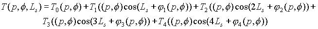Показано, что суточные вариации температуры на разных уровнях в атмосфере описываются суперпозицией приливных, солнечно-связанных волн с периодом 1, ½, 1/3, ¼ суток.