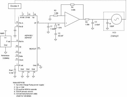 · Тип микросхемы синтезатора выбран ADF4106. Эта микросхема обладает минимальным уровнем
