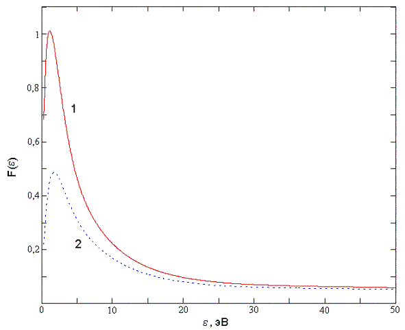 энергетический спектр ион-электронной эмиссии из пленки золота для различных