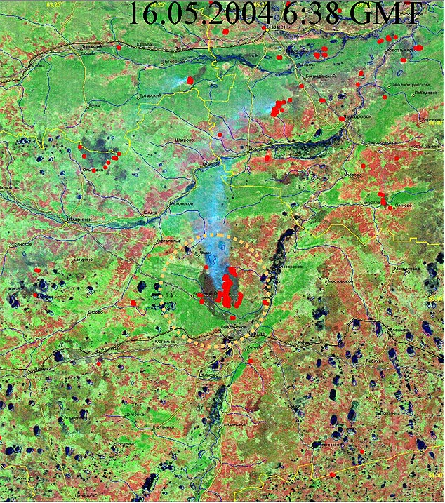 Рис 2. Крупный лесной пожар в Курганской области 16.05.2004