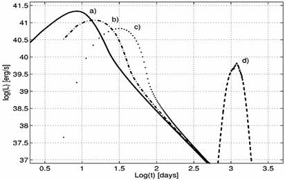 облака, кривая d). Болометрическаяя светимость переизлученного сигнала может
