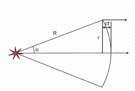 модели. Стрелки указывают направление на удаленного наблюдателя, r=(2crt)^{0.5}. |