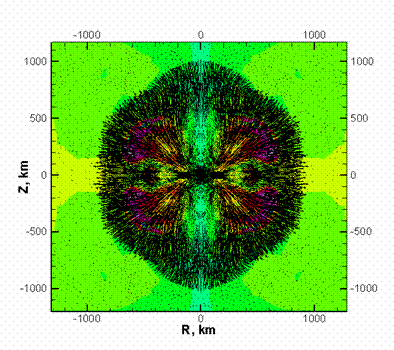 магниторотационном взрыве с начальным магнитным полем дипольного типа. |