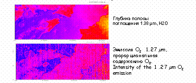 Эмиссия кислорода 1.27 мкм, наблюдалась в спектрах всех трех экспериментов: с высоким спектральным разрешением экспериментами СПИКАМ и ПФС и высоким пространственным разрешением – ОМЕГА. Наибольшей интенсивности эмиссии достигают в северной полярной области в конце полярной зимы. Изображения ОМЕГА на орбите 68 в полосе излучения 1.27 мкм имеют волновую структуру, подобные же волны наблюдаются и в изображениях облаков из водяного льда и СО2. Это могут быть гравитационные волны, которые наблюдаются в атмосфере Марса в северной полярной области в эмиссии О2 впервые. Сильная температурная инверсия на высоте 10-20 км, которая наблюдалась на орбите 68 прибором ПФС, ниже которой может происходить конденсация СО2, создает благоприятные условия для генерации гравитационных волн. Хотя эмиссии О2 наблюдаются во многих спектрах, но волновые структуры наблюдались только в двух сеансах вблизи северного полюса (68 и 588). Планируются в дальнейшем провести совместные наблюдения ПФС и ОМЕГА вблизи терминатора над зимним полюсом, где и должны наблюдаться волновые структуры.