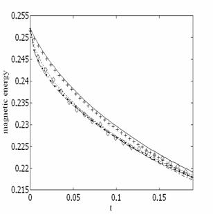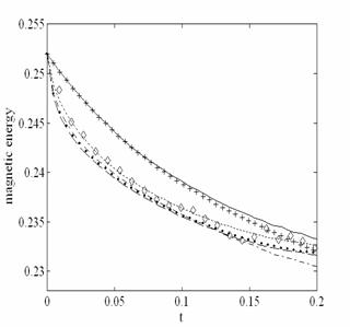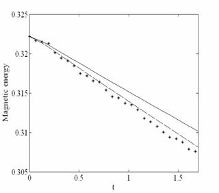 Временная эволюция кинетической и магнитной энергии для случая, когда ![]()