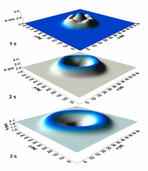 Эволюция падения столба жидкости над