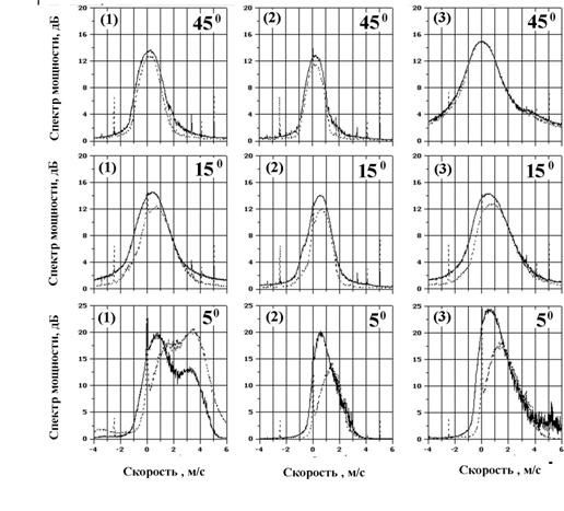 6- проведены предварительные исследования Доплеровских спектров сигналов, рассеянных обрушивающимися волнами при настильных углах зондирования, в результате которых показано что: