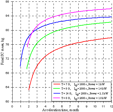 расстояниях от Земли, в зависимости от характеристик паруса.