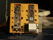 СВЧ часть скаттерометра выполнена в виде единого моноблока, внешний вид которого представлен фотографии, Рис.4. На фотографии видны два волноводных окна – вход приемника и выход передатчика, объемный резонатор, сигнальные разъемы и контакты подачи питания.