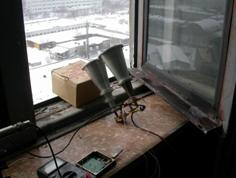Предварительные испытания СВЧ части скаттерометра проводились из окна здания ИКИ РАН путем измерения параметров отражения сигнала от атмосферных гидрометеоров. В качестве антенн были применены рупорные антенны с шириной диаграммы направленности около 10 градусов, в качестве анализирующего устройства применялся анализатор спектра FSEK-30.