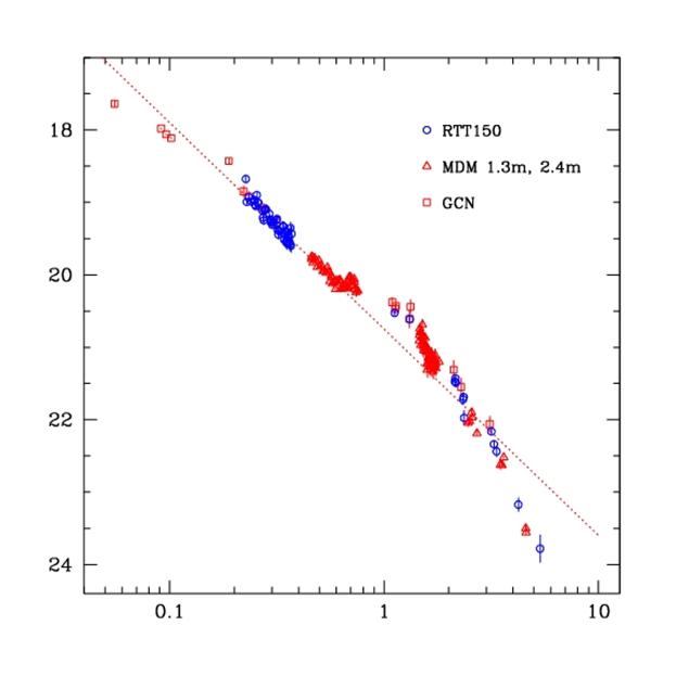 сотрудничестве с другими обсерваториями подробно исследовано послесвечение