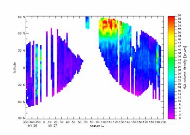 (осажденных микрон воды). Максимальное содержание наблюдается в начале лета (Ls~110)