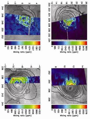 2000-3000 ррм (частей на миллион)) над вершинами всех четырех вулканов в