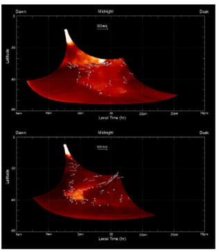 данным Марс-Экспресс дает прекрасное совпадение локализации полярного сияния с