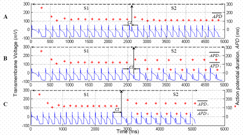 Luo и Rudy (на всех графиках по оси абсцисс отложен период стимуляции (