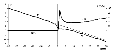 времени, после чего зональный ветер перестраивается и снова становится
