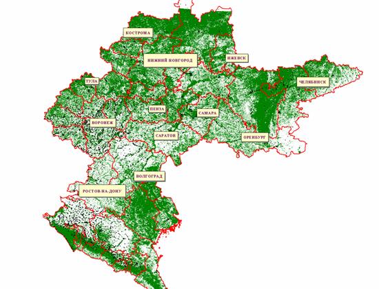 км, а также карту лесов СССР. В качестве входных спутниковых данных для