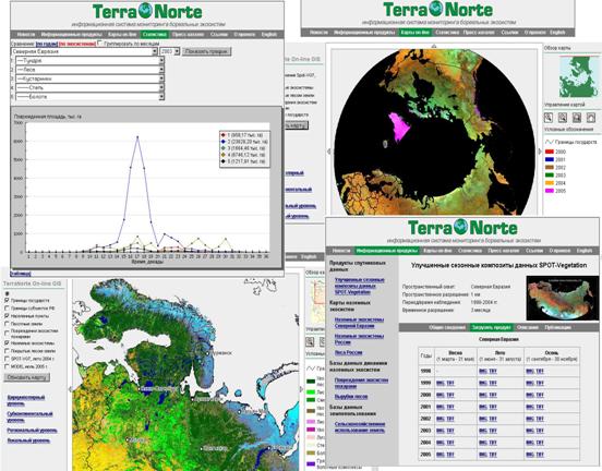 Проводимые в ИКИ РАН исследования, касающиеся регулярного мониторинга изменений в бореальных лесах Северной Евразии с использованием данных спутниковых наблюдений, и наличие обширной постоянно пополняемой базы данных о произошедших изменениях, позволяют перейти от количественных оценок произошедших изменений к таким экологических характеристикам как потоки углерода. За прошедший год была сформирована база данных на тестовый участок региона Центральной Сибири, включающая в себя спутниковые данные среднего и высокого разрешения, лесоинвентаризационные базы данных и данные лесной таксации, а также фрагментарные данные наземных наблюдений. Кроме того, проведена работа по исследованию мирового и российского опыта использования спутниковых изображений, а также различных индексов, характеризующих свойства растительности и климата, построенных на основе спутниковых изображений, в качестве входных данных для существующих моделей оценки эмиссий углерода, вызванных изменениями. В дальнейшем планируется реализация одной или нескольких моделей с целью оценки эмиссий углерода, вызванных произошедшими изменениями, и сравнение полученных результатов с наземными измерениями с целью повышения качества моделирования.