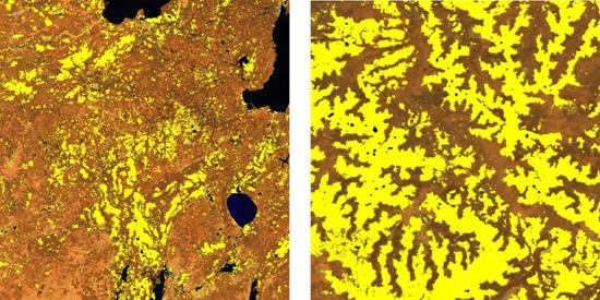 изображения Terra-MODIS с пространственным разрешением 250 м.