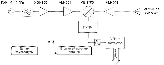 в диапазоне частот от 46.5 до 48.5 ГГц. В качестве источника мощности применяется
