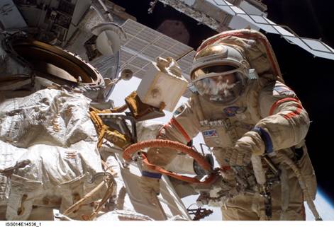 Рис. 4. Астронавт М.Лопез-Алегрия во время установки