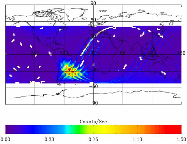 гамма-излучения верхней атмосферы Земли на орбите МКС (пример карты излучения