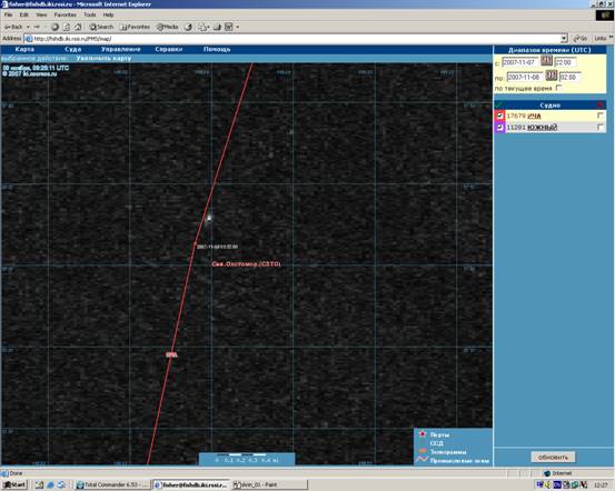 Пример сопоставления данных полученных от спутникового радиолокатора с данными позиционирования судов.