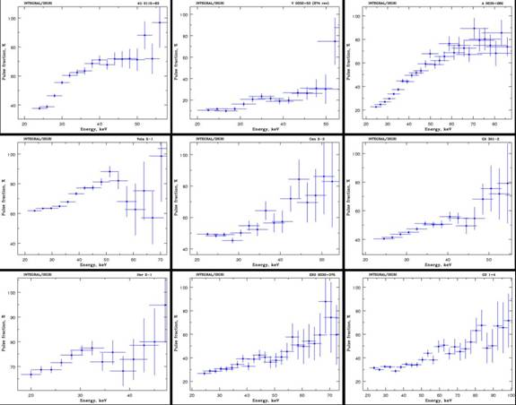 рентгеновских пульсаров по данным космической обсерватории ИНТЕГРАЛ. Были получены наиболее точные на данный момент результаты