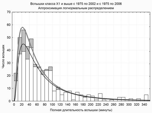вспышек по времени их нарастания хорошо аппроксимируется единым логнормальным