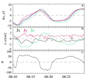 По данным четырех спутников проекта Cluster показано, что: