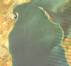 бухты на глубине 5-6 метров. Повышенный радиолокационный контраст узкой полосы