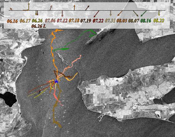В течение весны-осени 2008 года в рамках оперативного спутникового мониторинга состояния и загрязнения вод прибрежной полосы российского сектора Азовского и Черного морей изучались вторичные загрязнения морской поверхности. Весенне-летний прогрев морской воды привел к всплытию осевших на дно нефтепродуктов. К тому же, носовая часть танкера с остатками нефтепродуктов оставалась на месте катастрофы до 13 августа 2008 г., что также способствовало постоянным загрязнениям морской поверхности. В течение июня – августа 2008 г. была получена серия РЛИ, на которых отчетливо проявились пленки нефтепродуктов в районе катастрофы. Данные пленки, распространяясь под действием ветра и течения на несколько километров, являлись своего рода трассерами, позволившими изучать циркуляционные процессы в Керченском проливе. Наиболее информативные снимки и результаты их обработки представлены на сайте http://www.iki.rssi.ru/asp/dep_moni.htm.