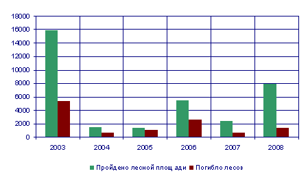 погибших лесов за 2003-2008 годы (тыс. га) |