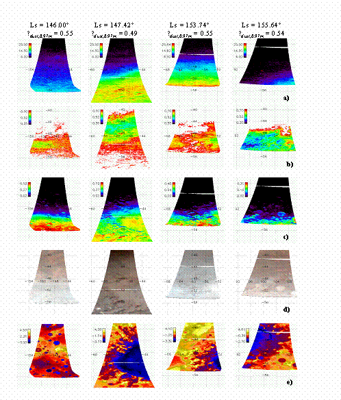 десятков сеансов лимбовых наблюдений прибора OMEGA (отличающихся ареографической широтой области наблюдения и марсианскими