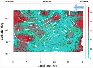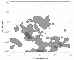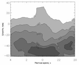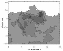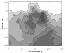 на широтах 20°-50° вблизи полудня, невозможно объяснить только наличием в