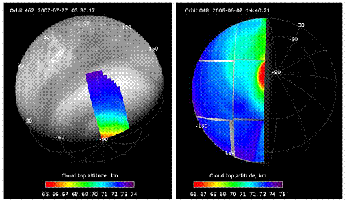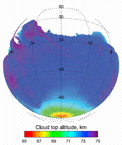 полученных из серий изображений камеры VMC аппарата Venus-Express, подтвердили значительное увеличение оптической толщины