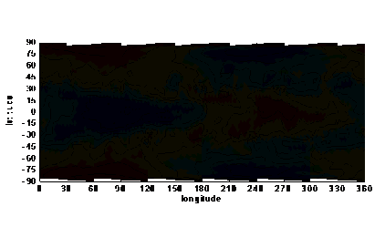 Продолжена работа по восстановлению содержания водяного пара в атмосфере Марса по данным СПИКАМ ИК на КА Марс-Экспресс в полосе 1.38 мкм. Получены карты сезонного распределения водяного пара за три марсианских года в период января 2004 (Ls=330°, MY26) по октябрь 2009 (Ls=359°, MY29). СПИКАМ ИК – акустооптический спектрометр, работающий в диапазоне 1-1.7 мкм с разрешением ~2000. Основной научной задачей СПИКАМ является измерение водяного пара в атмосфере Марса, малой составляющей, играющей важную роль в климате планеты. Основной неопределенностью при восстановлении содержания H2O по полосе в ближнем ИК-диапазоне является рассеяние света на аэрозоле в атмосфере Марса, что приводит к изменению глубины полосы газа и видимому уменьшению его содержания.