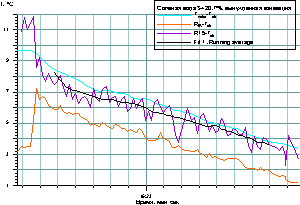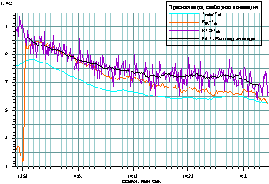 Видно, что во всех сериях измерений при небольшой скорости ветра разница температуры холодной пленки и нижележащих слоев воды достигала значений –1,5…–2,0 оС. Причем наличие холодной пленки отмечалось при наличии обдува на протяжении всего периода измерений, что говорит о том, что пленка является устойчивой во времени структурой.