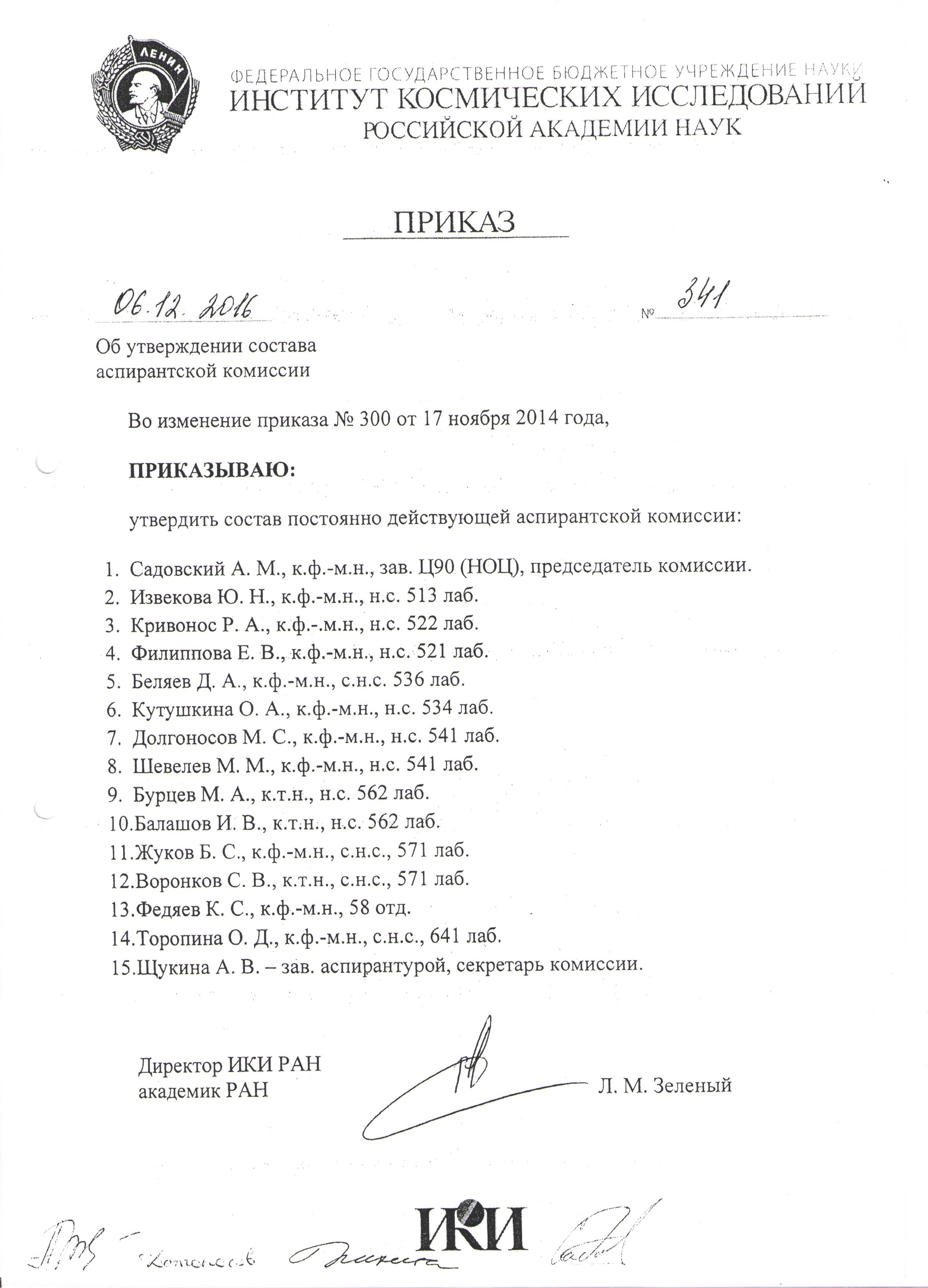- Приказы о зачислении в аспирантуру ИКИ РАН