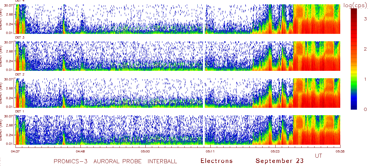 - Auroral electrons above the nightside oval on the left, and above the dayside oval - on the right.