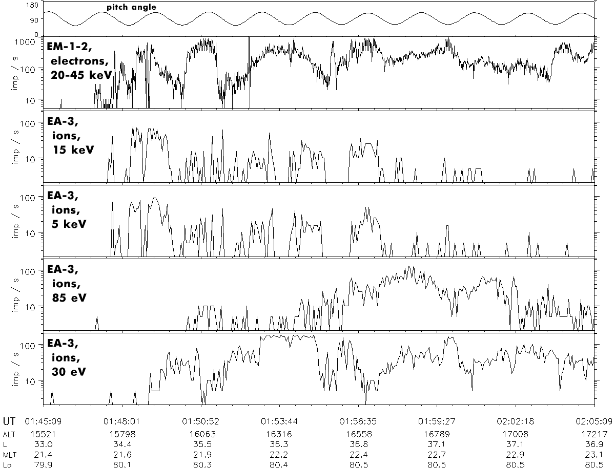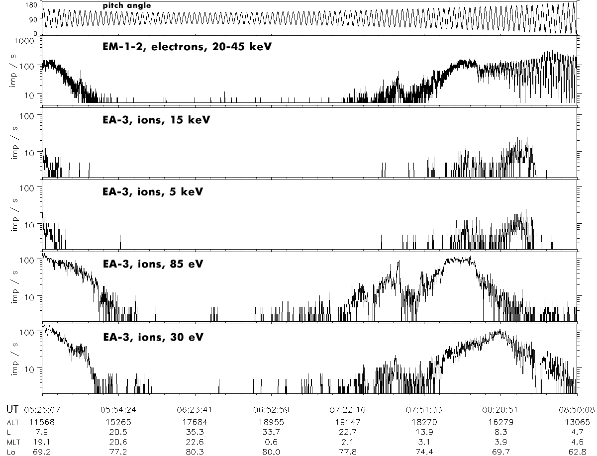 beams in the energy range 20 - 45 keV at altitudes about 3 RE,