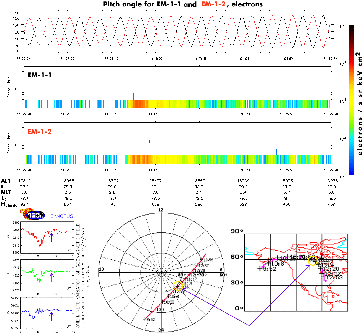 accompanied by bidirectional electron FA beams of keV energy. The ILAT-MLT