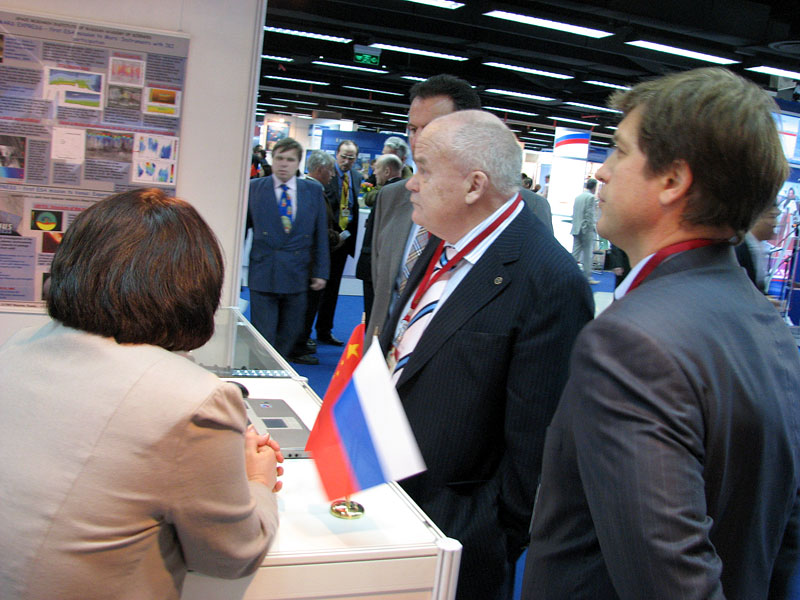 Стенд ИКИ РАН посетил академик РАН Велихов Е.П. Он высказал пожелание - в следующий раз в числе научных экспонатов представить на стенде ИКИ РАН разработки в области астрофизики высоких энергий.