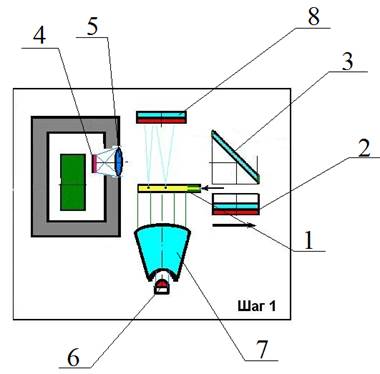 оптические элементы 5 строят ее увеличенное изображение на плоскости системы