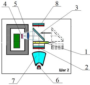 зеркала 3, основной системы регистрации 4 в виде ПЗС-матрицы и оптических